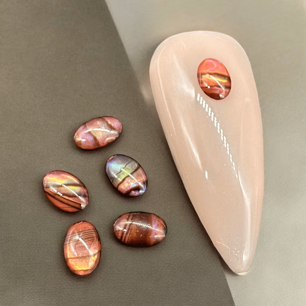 Snäckliknande stenar i en glödande röd nyans. Perfekta för att ge din nail art ett färgstarkt och unikt uttryck som fångar blicken.