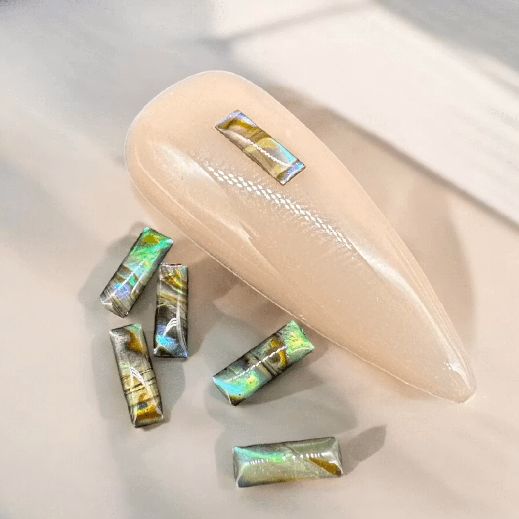 Vackra snäckliknande stenar i skimrande och skiftande blå nyanser. Perfekta för havs- och strandinspirerade nageldesigner eller för att skapa snygga detaljer med en marin känsla.